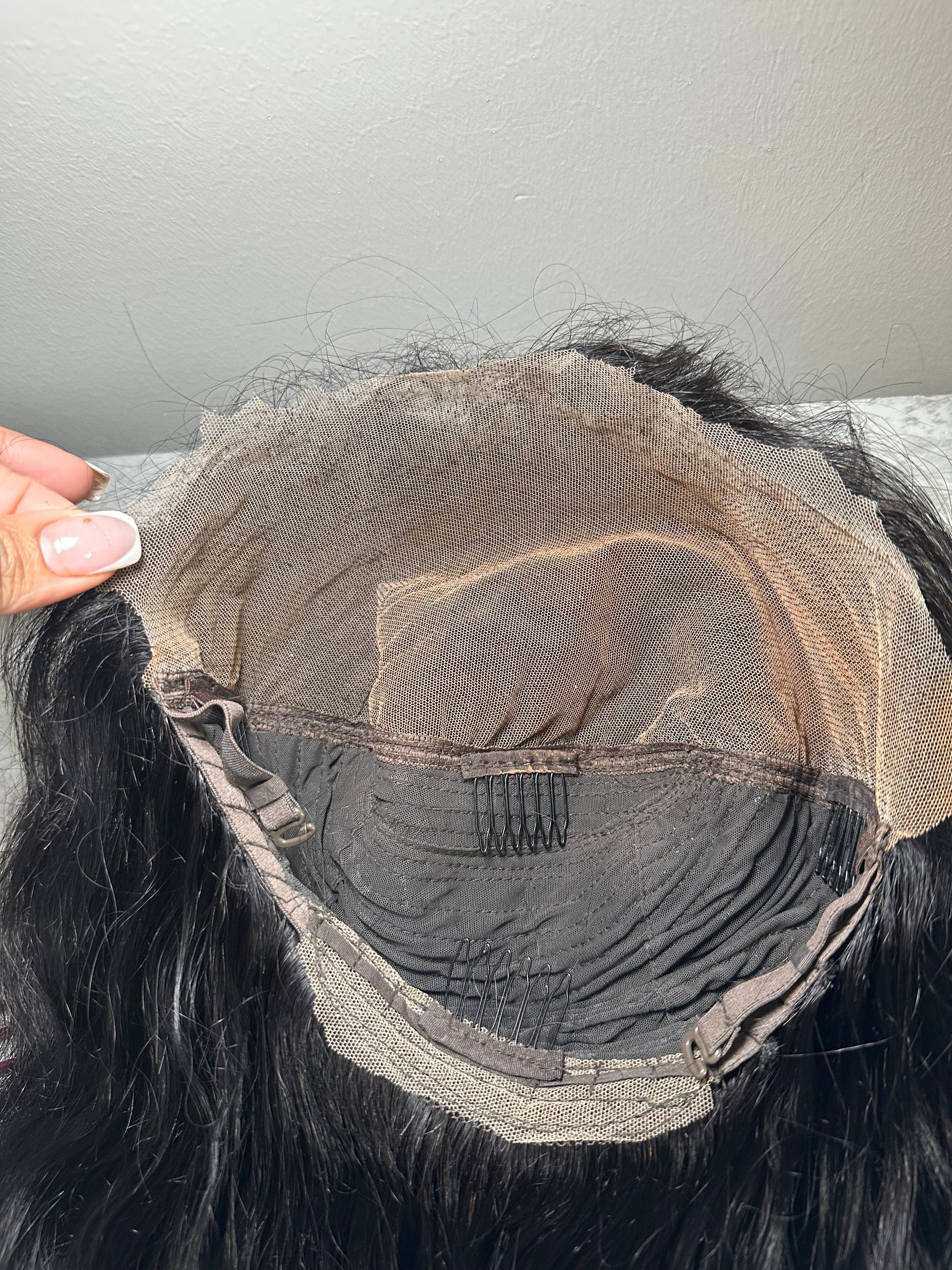 All wigs have been washed, deep conditioned, and clean of glue. After washing, all items have been air dried and left in the natural hair pattern.